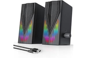 SOULION Alto-falantes de computador R30, alimentados por USB, 3,5 mm AUX para PC, luzes LED coloridas com botão de interrupto